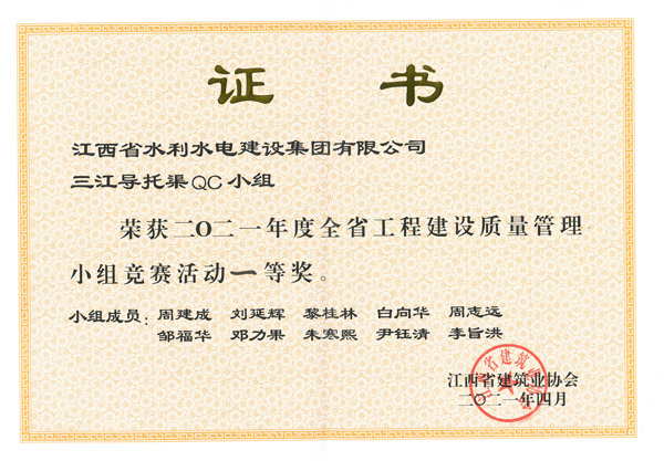 集團(tuán)資訊近日,2021年度江西省工程建設(shè)質(zhì)量管理小組競(jìng)賽活動(dòng)公布名次,由公司三江導(dǎo)托渠QC小組開(kāi)展的QC活動(dòng)榮獲小組競(jìng)賽活動(dòng)一等獎(jiǎng)。該獎(jiǎng)項(xiàng)的獲得,為公司工程創(chuàng)優(yōu)奠定了堅(jiān)實(shí)的基礎(chǔ),為公司爭(zhēng)得了榮譽(yù),今后,江水建設(shè)將繼續(xù)深入開(kāi)展QC活動(dòng),秉承工匠精神推動(dòng)質(zhì)量提升,打造更多精品工程,為樹立集團(tuán)公司品牌形象繼續(xù)努力。