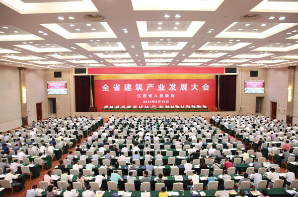 6月15日上午,江西省政府在南昌召開全省建筑產(chǎn)業(yè)發(fā)展大會,省政府朱虹副省長、蔡玉峰副秘書長,住房城鄉(xiāng)建設(shè)部總工程師陳重,建設(shè)廳領(lǐng)導張勇等出席了會議。省直有關(guān)單位負責人,各設(shè)區(qū)市、縣(市、區(qū))政府分管領(lǐng)導和建設(shè)局(建委)主要負責人,全省特、一級建筑企業(yè)和受表彰建筑企業(yè),部分勘察設(shè)計單位、監(jiān)理單位負責人近600人參加會議。
