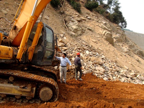 胡鴻煌副總經(jīng)理現(xiàn)場指導(dǎo)洞口水庫除險加固工程圍堰施工