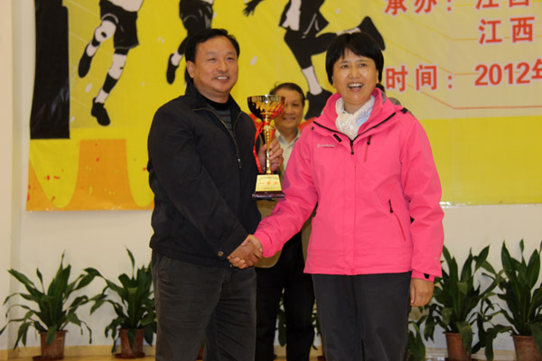 廳副巡視員周江紅為我公司頒發(fā)冠軍獎杯