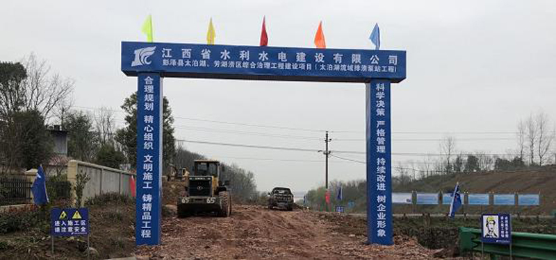 彭澤縣太泊湖流域排澇泵站規(guī)模為中型泵站,設計排澇流量為44.73m3/s。項目合同金額為2816.74萬元,工期360日歷天。工程由進水渠、出水渠、泵站、水閘、兩岸連接建筑物、副廠房、管理房、進場道路等建筑物組成。合同主要工程量:土方開挖約9萬m3、土方回填約4.3萬m3 、混凝土澆筑約1.7萬m3 、鋼筋制安約1119t 、預應力混凝土管樁約4.5km 、深層攪拌樁防滲墻約734m2等。