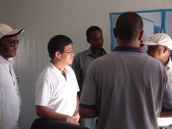 2013年1月14日,埃塞政府前副總理(現(xiàn)任埃塞糖業(yè)公司總經(jīng)理)ABAY TSEHAY一行來(lái)到我公司承建的埃塞KURAZ灌溉項(xiàng)目現(xiàn)場(chǎng)視察工作。