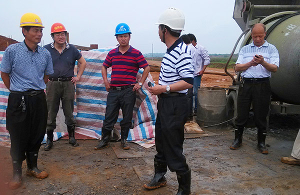吳義泉總指揮現(xiàn)場(chǎng)查看舍邊電排站副廠房施工