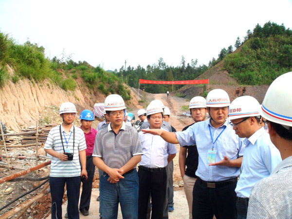 2013年9月10日下午,水利部全國水利安全生產(chǎn)大檢查督查組對我公司承建的銅鼓縣大塅水庫除險加固工程進行安全生產(chǎn)現(xiàn)場督查。省水利廳廖瑞釗副廳長、廳安監(jiān)處鄒紫偉處長和袁建農(nóng)科長陪同督查,陪同督查的人員還有宜春市水利局李萬文局長、銅鼓縣人民政府陳六耀和劉學松副縣長、銅鼓縣水務局吳濟忠局長,以及各參建單位的代表,公司總經(jīng)理助理王俊華也陪同督查。