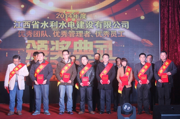 隨后,公司總經(jīng)理徐洪良宣讀了2014年優(yōu)秀表彰決定,并與公司領導班子一起,為雙河二期項目部等6個優(yōu)秀團隊、肖凱等10位優(yōu)秀管理者和周家煌等23位優(yōu)秀員工進行頒獎。徐總要求,希望受到表彰的先進集體和個人積極進取、再接再厲,以更加昂揚的斗志投入到今后的工作中,創(chuàng)造出更加輝煌的成績;希望各單位和廣大員工以優(yōu)秀團隊和先進個人為榜樣,加強學習,開拓創(chuàng)新,銳意進取,為江西水建燦爛的明天而努力工作!