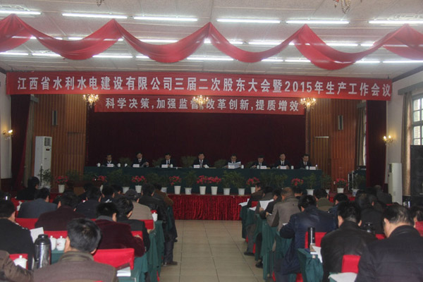 春回大地,萬象更新,正值全國兩會召開之際,江西省水利水電建設(shè)有限公司第三屆二次股東大會暨2015年生產(chǎn)工作會議,于3月10日在南昌隆重召開。公司董事、監(jiān)事、股東、中高層管理人員及員工代表共86名代表會聚一堂,共商公司改革發(fā)展大計,描繪企業(yè)美好藍(lán)圖。