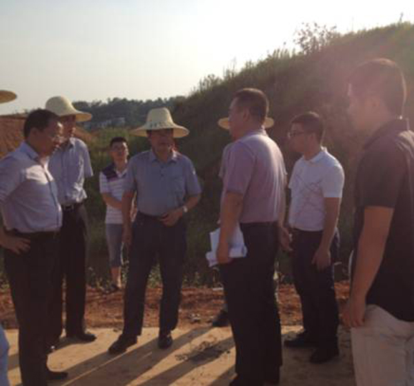 2015年07月13日下午,江西省水利廳副廳長(zhǎng)廖瑞釗、五河辦黃國金等領(lǐng)導(dǎo)一行來到我公司承建的江西省五河治理贛州市城市防洪工程社背堤現(xiàn)場(chǎng)視察指導(dǎo)工作。