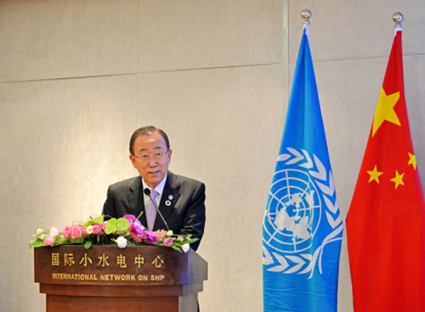 7月9日上午,聯(lián)合國(guó)秘書長(zhǎng)潘基文出席了由聯(lián)合國(guó)開發(fā)計(jì)劃署、聯(lián)合國(guó)工發(fā)組織、國(guó)際小水電中心共同舉辦的“應(yīng)對(duì)氣候變化南南合作主題會(huì)”,并發(fā)表重要講話,會(huì)議在國(guó)際小水電中心舉行。聯(lián)合國(guó)副秘書長(zhǎng)吳紅波、中國(guó)駐聯(lián)合國(guó)代表劉結(jié)一大使等陪同出席。