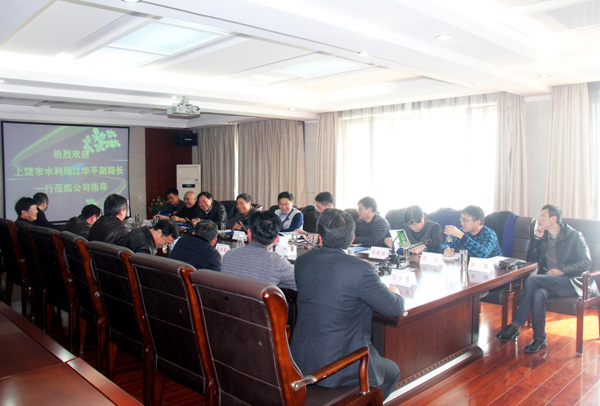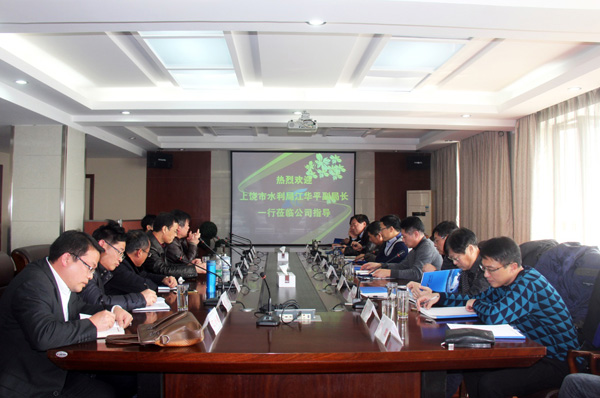 2月15日,上饒市水利局副局長江華平一行來公司就企業(yè)改制工作進行調研。公司董事長王元旦、總經理徐洪良、黨委書記王延軍、副總經理兼江西海外公司執(zhí)行董事張周平、副總經理曾朝文等一同參加了調研座談。