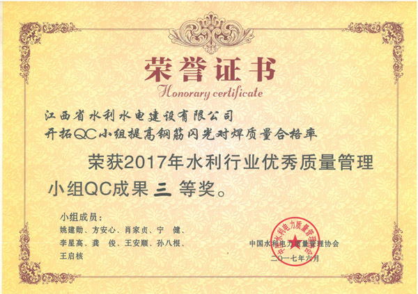 近日,中國水利電力質(zhì)量管理協(xié)會水利分會在湖南省長沙市,舉辦了2017年水利行業(yè)優(yōu)秀QC小組成果發(fā)表會,并在本次發(fā)表會上發(fā)布了206項(xiàng)QC成果。本次成果發(fā)表會上,我公司發(fā)表的4項(xiàng)QC成果中, 1項(xiàng)QC成果獲一等獎,2項(xiàng)QC成果獲二等獎,1項(xiàng)QC成果獲三等獎。公司已連續(xù)3年獲得水利行業(yè)優(yōu)秀QC小組成果獎。