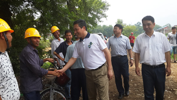 2014年8月8日上午,上饒市委書記陳俊卿一行來(lái)到我公司承建的玉山縣樟村鎮(zhèn)防洪工程檢查指導(dǎo)工作。來(lái)到施工現(xiàn)場(chǎng),陳俊卿書記一行頂著炎炎烈日,深入查看并了解了防洪工程的投資規(guī)模和施工生產(chǎn)建設(shè)情況,隨后,項(xiàng)目部經(jīng)理?xiàng)钚≠F對(duì)項(xiàng)目完工后將產(chǎn)生的防洪生態(tài)效益作了簡(jiǎn)單介紹,陳俊卿書記聽后非常高興,他指出,項(xiàng)目部和承建單位要齊心協(xié)力,加強(qiáng)安全生產(chǎn)管理,確保工程順利完工,早日造福當(dāng)?shù)匕傩铡W詈?,陳俊卿書記還詢問了施工人員的生活情況,叮囑項(xiàng)目部既要保證工程施工進(jìn)度,也要注意防暑工作,讓員工家屬放心。