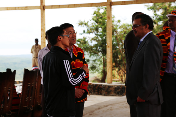 2014年9月3日,中國駐埃塞俄比亞大使館政務(wù)參贊覃儉代表中國大使館來到我公司KURAZ項(xiàng)目工地視察,并慰問一線項(xiàng)目員工。我公司駐埃辦事處主任郭惠明全程陪同接待。