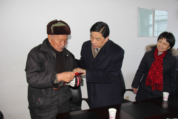 寒冬臘月,雪花飛舞。1月20日下午,水利廳黨委書(shū)記、廳長(zhǎng)孫曉山率廳人事處處長(zhǎng)周江紅、廳離退休干部處副調(diào)研員金光榮、曾三榮一行4人冒著嚴(yán)寒來(lái)我公司生活基地慰問(wèn)離退休職工。公司董事長(zhǎng)總經(jīng)理王元旦、黨委副書(shū)記王延軍、生活基地管理處相關(guān)負(fù)責(zé)人陪同慰問(wèn)。