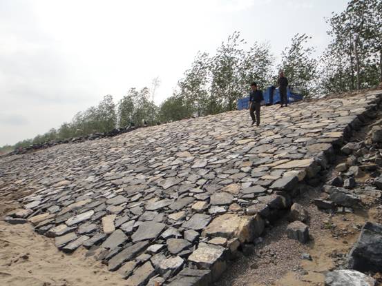 [注:九江長江江心洲固岸應(yīng)急度汛工程,包括九江縣江新洲1標(biāo)和彭澤縣棉船洲1標(biāo),由我公司中標(biāo)承建。工程主要建設(shè)內(nèi)容為拋石、砼四邊六面框架、干砌石護(hù)坡,項目總投資4000萬元。江新洲和棉船洲大堤共保護(hù)面積130.39 平方公里,保護(hù)耕地12.18萬畝,保護(hù)人口8.39萬人,圩區(qū)內(nèi)土地肥沃,灌溉便利,是江西省的重要棉油生產(chǎn)基地。]