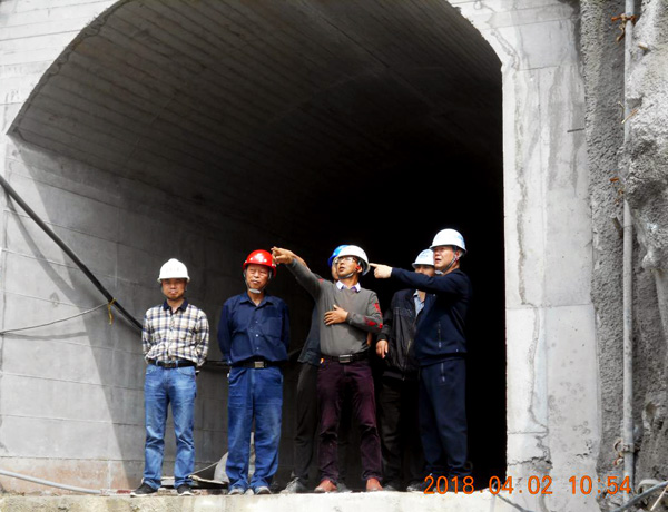董事長在導(dǎo)流洞出口聽取項目經(jīng)理匯報工程進(jìn)展情況