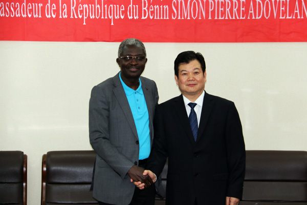 4月28號下午,貝寧駐華大使Simon Pierre Adovelande攜其代表團一行蒞臨我司進(jìn)行調(diào)研指導(dǎo)。江西省水利規(guī)劃設(shè)計研究院副院長柯勁松、副院長王百新,公司董事長王元旦、海外公司執(zhí)行董事張周平、海外公司總經(jīng)理黃鄭民等領(lǐng)導(dǎo)共同出席接待并座談交流。