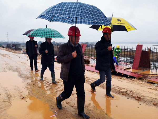 1月11日,由公司總工程師胡鴻煌、首席專家郭洪有、工程部副部長王海鵬組成的安全生產(chǎn)檢查組,冒雨來到禾河大道路堤結(jié)合改造工程施工2標段,進行安全生產(chǎn)、度汛安全檢查。