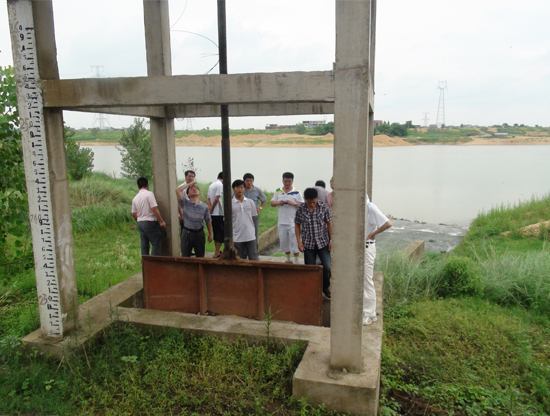 驗(yàn)收工作組成員查看鎮(zhèn)3標(biāo)寺山電排站