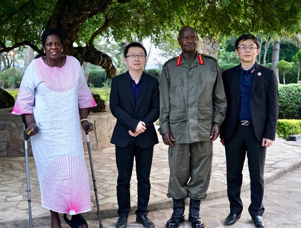 烏干達(dá)總統(tǒng)、烏干達(dá)駐肯大使與賀翔、李江夏合影