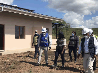 Cecilia女士先后參觀了移民房、副壩、溢洪道和水庫(kù)管理站新辦公大樓,并現(xiàn)場(chǎng)觀摩了弧形閘門(mén)的啟閉演示。她邊看邊問(wèn),詳細(xì)了解各分部工程的建設(shè)情況和項(xiàng)目總體進(jìn)度,認(rèn)真聽(tīng)取日常施行的各項(xiàng)防疫措施;在得知項(xiàng)目即將竣工的消息后,對(duì)承包商的表現(xiàn)表示高度贊賞。她動(dòng)情地說(shuō)道,盡管現(xiàn)在新冠肺炎肆虐全球,但是優(yōu)秀的中國(guó)承包商在做好各項(xiàng)防控措施的基礎(chǔ)上,仍然堅(jiān)守戰(zhàn)線、迎難而上,充分體現(xiàn)了履約精神和奉獻(xiàn)精神,值得尊敬!她表示,也許疫情將持續(xù)一段時(shí)間,但是只要承包商有困難,就要毫不猶豫地向政府表達(dá),公共工程部永遠(yuǎn)是承包商堅(jiān)強(qiáng)的后盾。她強(qiáng)調(diào),業(yè)主國(guó)家水務(wù)局和承包商要更加精誠(chéng)團(tuán)結(jié),充分估計(jì)疫情可能造成的各類影響,謀劃在前、全盤(pán)統(tǒng)籌,以縝密的防控措施和有力的生產(chǎn)行動(dòng)站好最后一班崗,如期實(shí)現(xiàn)項(xiàng)目移交和運(yùn)營(yíng),為300萬(wàn)首都人民帶去生命之水。