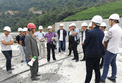 第二站,學習團來到新屯水庫,跟隨著項目管理團隊參觀了導流隧洞、上壩公路、主壩施工區(qū)、進水塔、溢洪道、沉降觀測室、料場、復建公路等施工區(qū)域,隨后由項目副經理向國華、測量負責人鄒國群及質量負責人廖軼先分別就各自負責的工作內容向學員們進行了現場授課。通過現場學習,學員們了解到該工程七大特點。