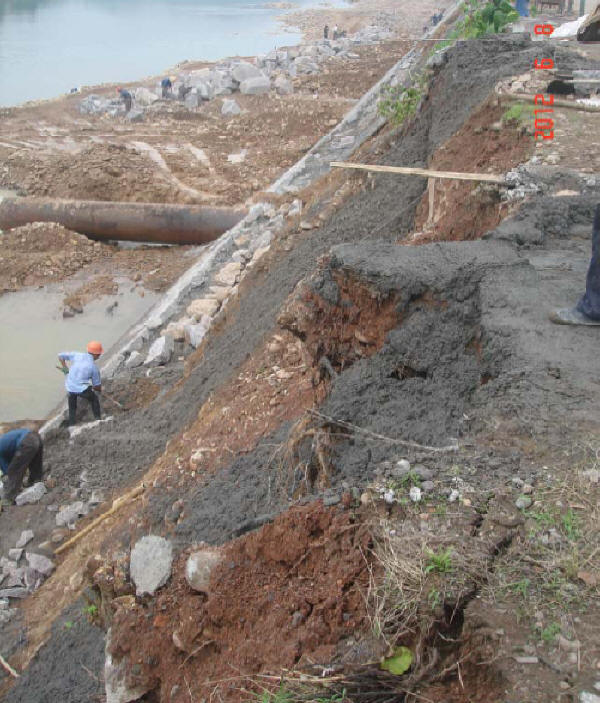 ①土石結(jié)合部的土料填筑質(zhì)量(壩體與溢洪道、與山體);砌體、砼結(jié)構(gòu)、山體與土體之間必須設置截水墻!例:新疆聯(lián)豐水庫