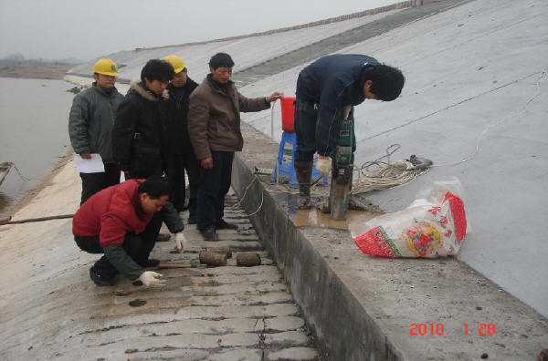 ※ 重點檢查水庫的險情是否已按設計要求給予消除;工程質(zhì)量是否按規(guī)定檢驗,各項檢測數(shù)據(jù)是否滿足設計要求或相關(guān)標準:土方的壓實度、滲透系數(shù);混凝土(含預制塊)的抗壓強度、抗凍、抗?jié)B、彈性模量;砂漿的抗壓強度;灌漿的壓水試驗結(jié)果(透水率Lu):固結(jié)灌漿≮5%、帷幕灌漿≮10%。