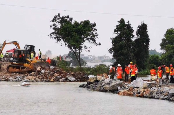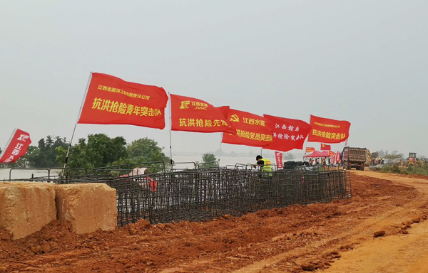 7月12日晚,九江市永修縣三角聯(lián)圩發(fā)生潰堤,決口長(zhǎng)度100多米,洪水淹沒(méi)了圩堤內(nèi)紅旗村、永豐墾殖場(chǎng)等部分地區(qū)。公司在接到省防指和水利廳下達(dá)的防汛任務(wù)后,積極響應(yīng),緊急抽調(diào)并組建了一支90余人的專業(yè)隊(duì)伍,并迅速落實(shí)機(jī)械設(shè)備。由公司黨委書記、董事長(zhǎng)王元旦親自帶隊(duì),星夜馳援一線。